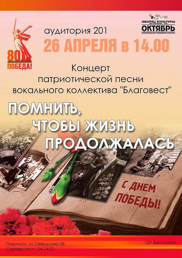 Информацию по билетам можно узнать в кассе или на сайте ДК «Октябрь».