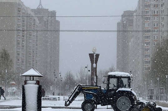 Ночью начался интенсивный снегопад. На дорогах и тротуарах образовался временный снежный покров.