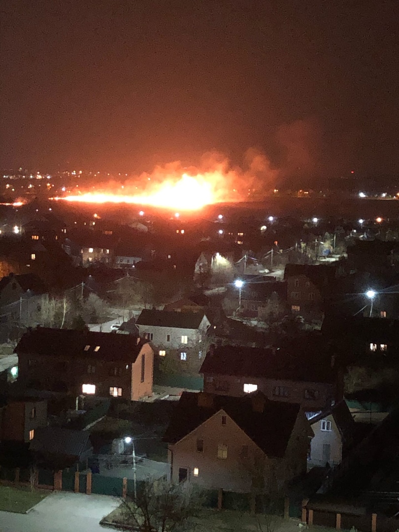Крупное возгорание произошло около 22.00 в понедельник в районе деревни Ерино. На место выехали пожарные расчеты. Выяснилось, что загорелось поле с травой.