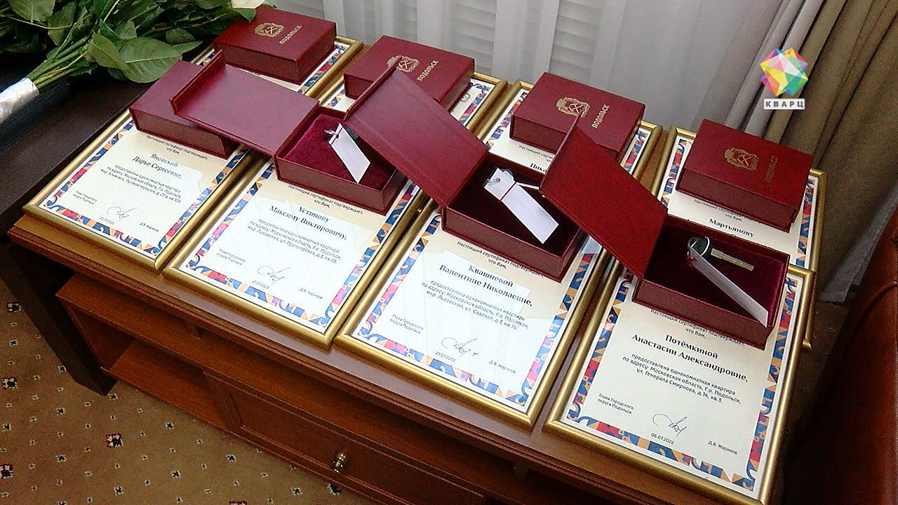 Ключи от квартиры Анастасия и еще 7 юношей и девушек получили из рук главы округа Дмитрия Жарикова и депутата Мособлдумы Павла Максимовича.