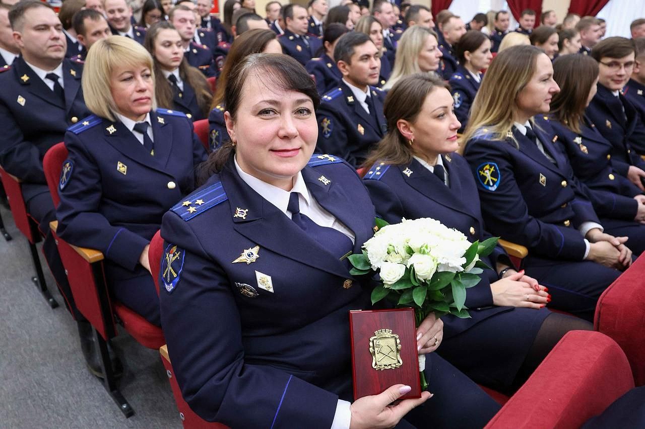 Лучшим полицейским руководитель округа вручает муниципальные награды. Заместитель начальника Следственного Управления Ольга Архиереева отмечена медалью за безупречную службу второй степени.