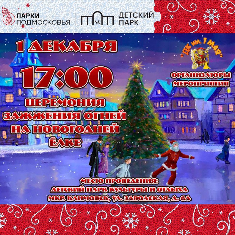 Самым ярким событием станет зажжение огней на новогодних елях с участием Деда Мороза и Снегурочки.
