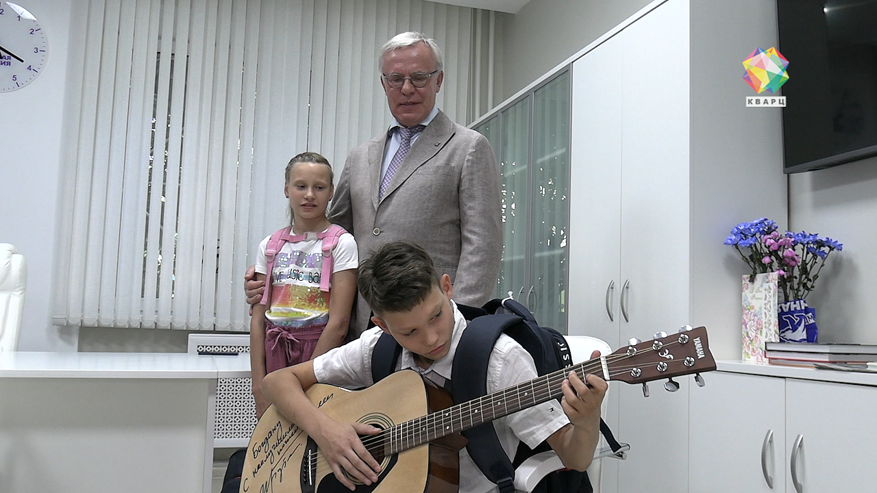 С особым настроением завтра в школу пойдут Маша и Богдан Басивские. Ребята со своими родителями переехали в Подольск из Мариуполя. На недавней встрече с депутатом Госдумы Вячеславом Фетисовым они рассказали, что и гитара, и форма для тхэквондо сгорели во время бомбежки, дом их полностью разрушен. Тогда легендарный хоккеист пообещал им все это подарить - и сдержал слово. Причем шестиструнную подписал известный музыкант - Игорь Бутман.