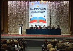 Во Дворце культуры "Октябрь" состоялась традиционная педагогическая конференция, на которой подводили итоги прошедшего учебного года и обсуждали перспективы развития системы образования в свете вступившего в силу закона Российской федерации "Об образовании". Светлана Сайгутина продолжит.