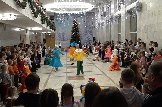 То, что в «Витязе» праздник, понятно сразу. Оркестр первой музыкальной школы задаёт тон торжеству. Ростовые куклы отвечают за настроение ребят. Дети и их родители в предвкушении новогоднего представления.