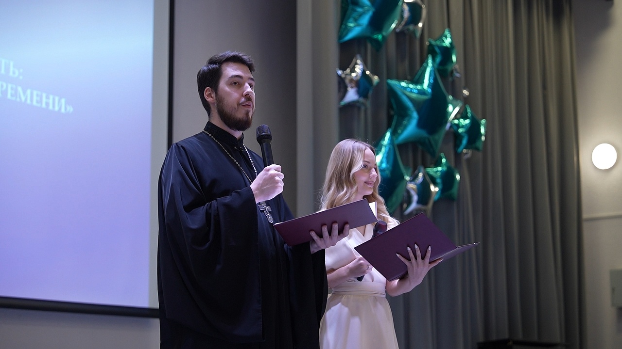 Все творческие номера, исторические очерки и доклады – это победители различных номинаций. Вот ученик школы №16 Андрей Петров рассказывает о жизни иконописца Андрея Рублёва. Следом на сцену выходит шестиклассник из Климовска Михаил Ерофеев, повествуя о тех святых местах, где побывал.