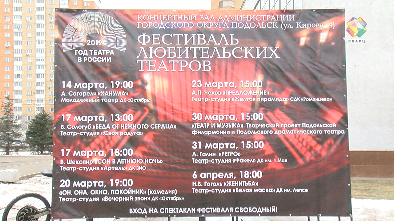 Кстати, 31 марта в 18 корпусе больницы вновь покажут «Кина 4». Премьера пьесы Горина состоялась в прошлом году. Ну, а театральный фестиваль Подольска продлится до 6 апреля. Следите за афишей. Вход на все спектакли в КЗА - свободный.