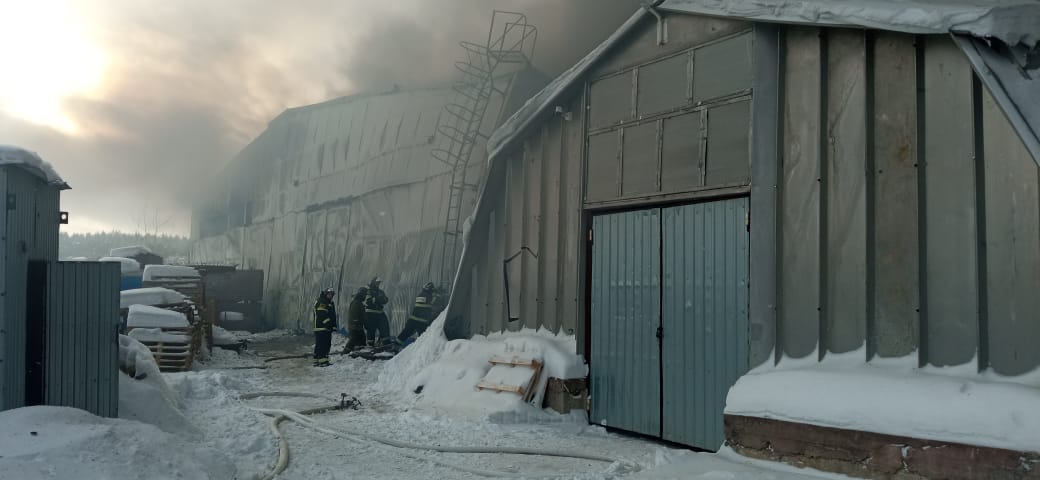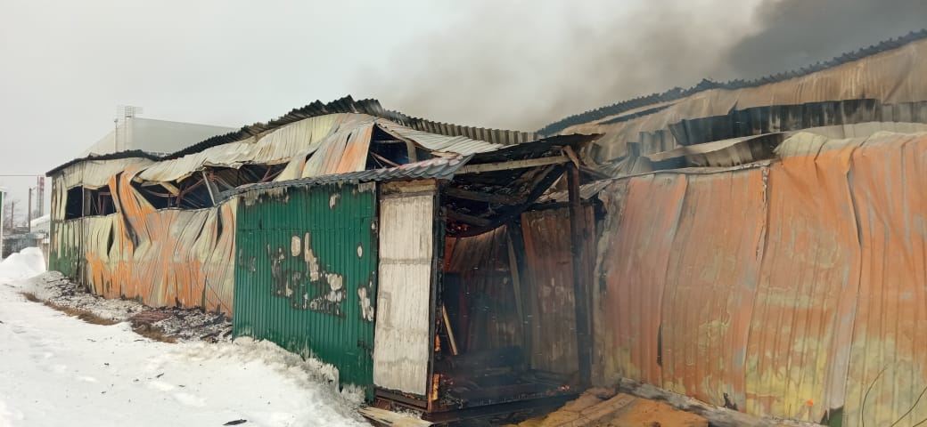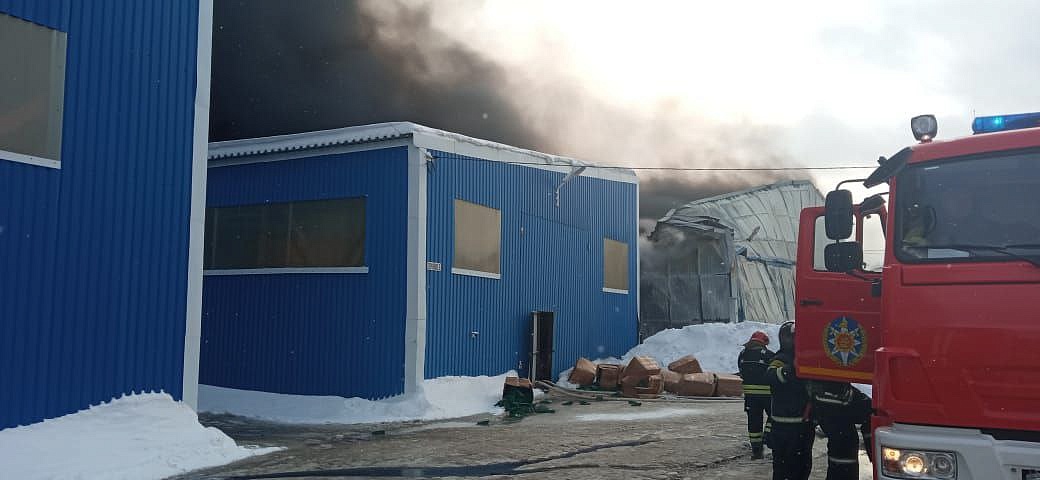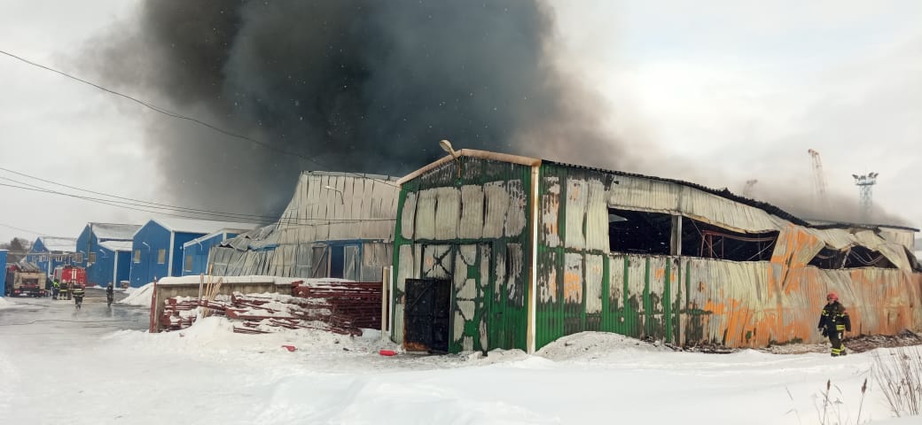 К моменту прибытия первых пожарных подразделений происходило открытое горение внутри ангара площадью 1500 кв.м.
