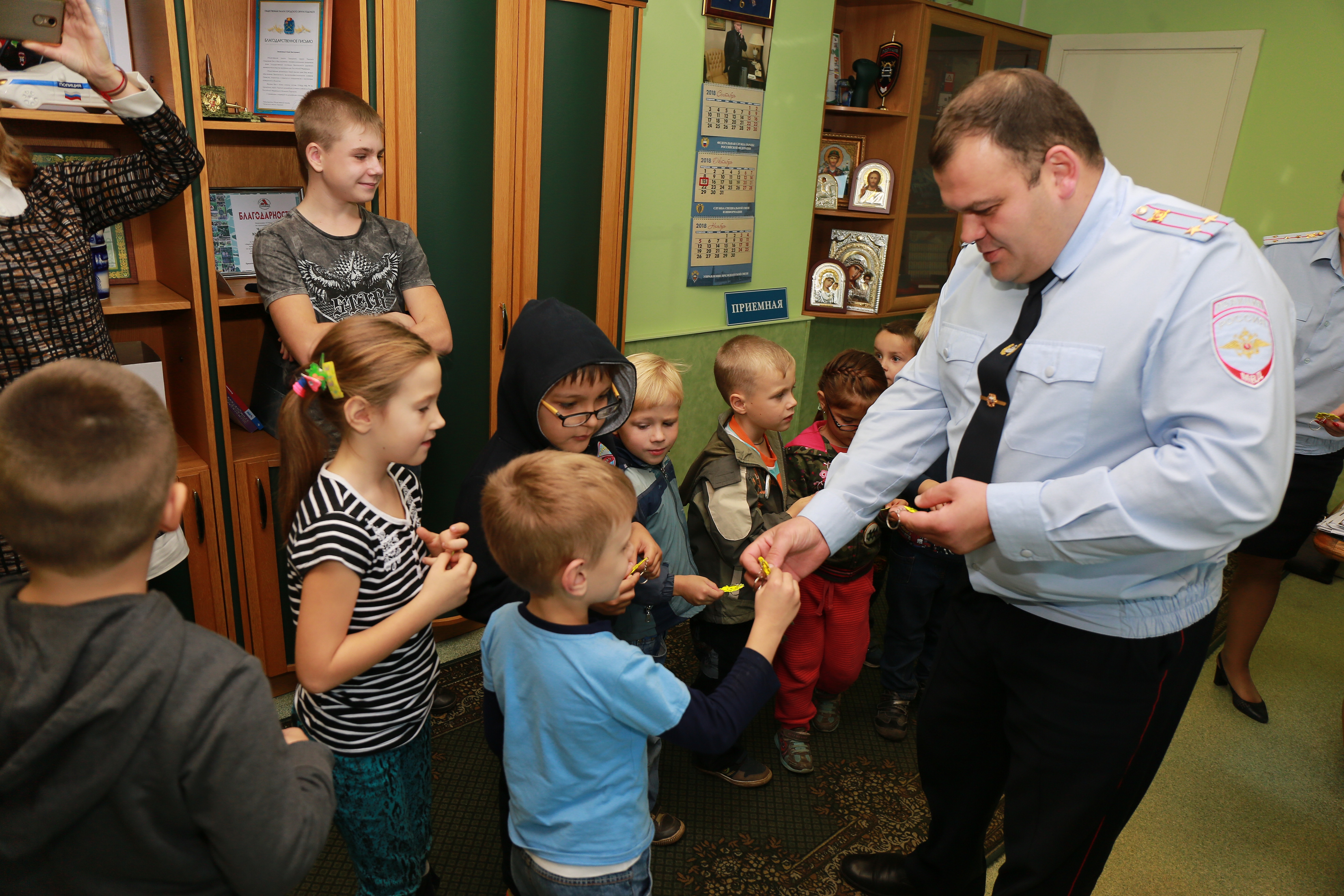 Также во время экскурсии по подразделению была осуществлена мечта мальчишек и девчонок – посидеть в служебном транспорте ГАИ и попробовать включать специальные звуковые сигналы и даже задать вопросы «самому главному начальнику» - от Юрия Черепянского дети получили в подарок светоотражающие элементы, пообещав всегда носить их на одежде и соблюдать правила дорожного движения.