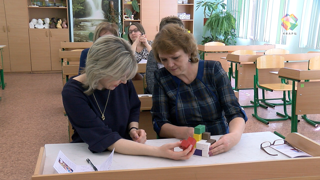 Учитель математики Светлана Орлова перед началом мастер-класса предлагает коллегам решить головоломку: из кубиков Никитина собрать фигуры разной сложности. Даже взрослым удается это не сразу. Игра очень полезная: она учит детей мыслить объемно, развивает математические способности и пространственное воображение.