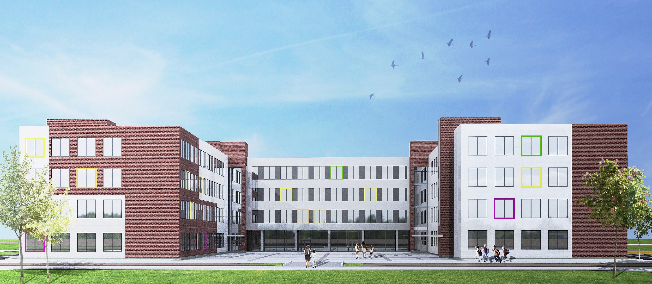 «Проектом предусмотрено строительство здания переменной этажности (2-4), в котором разместятся 33 учебных класса, лаборатории и мастерские, столовая с обеденным залом на 300 посадочных мест, малый и большой спортивные залы, музейно-выставочная зона, актовый зал на 300 мест, библиотека с медиатекой, медпункт, административные и вспомогательные помещения. Все учебные помещения будут оснащены необходимыми наборами мебели и оборудованием для организации учебного процесса», - говорится в сообщении.