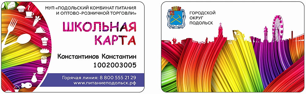 Школьная карта будет выглядеть как банковская карточка, на ней указаны фамилия, имя ученика и идентификационный номер. Работа выстроена следующим образом: родители пополняют лицевой счет школьной карточки, данные о перечисленной сумме банк переводит на интегрирующий сервер, а деньги поступают на расчетный счет предприятия, организующего школьное питание - МУП «Подольский комбинат питания и оптово-розничной торговли».