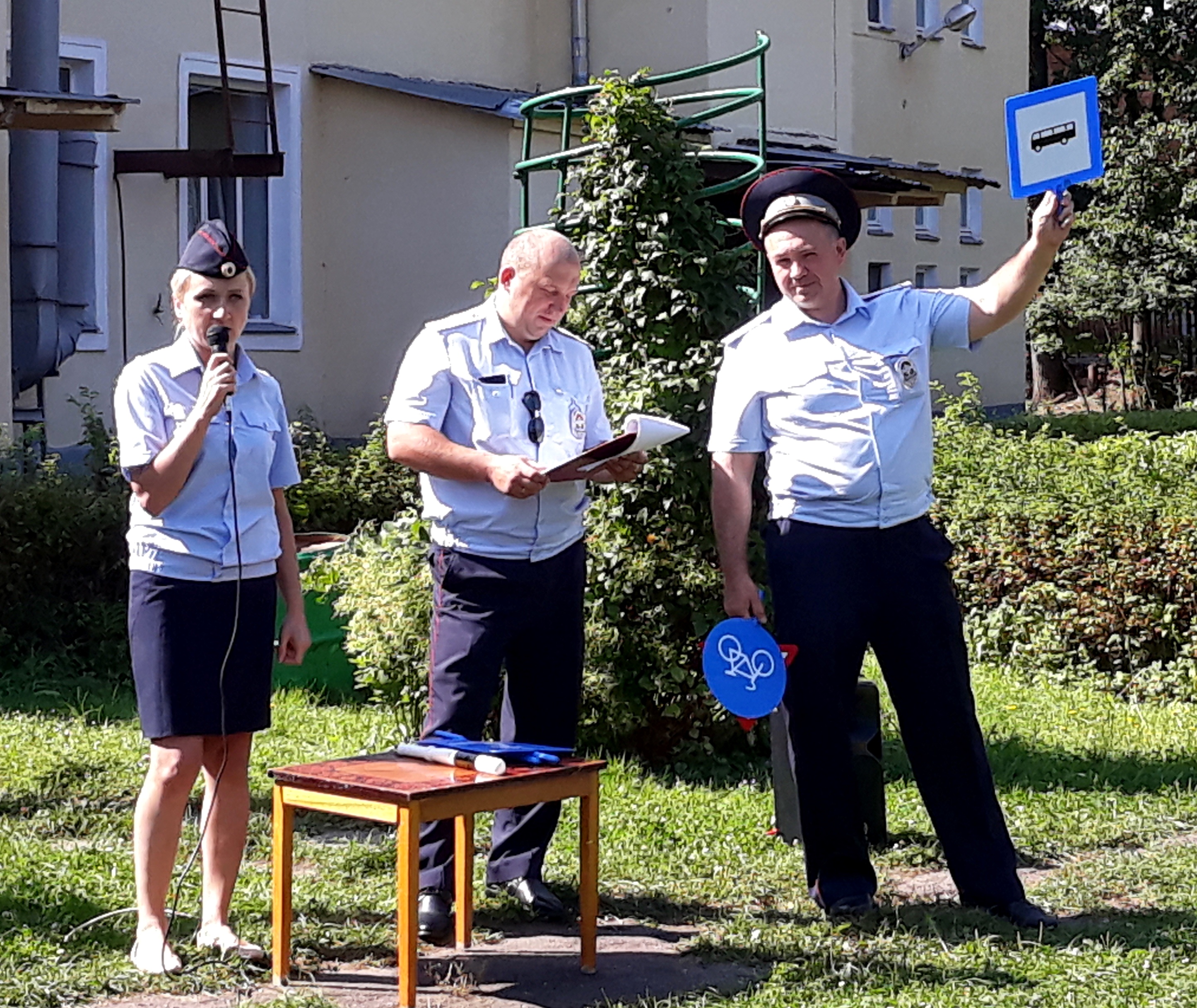 Настоящие инспекторы дорожной службы устроили детям праздник знаний.