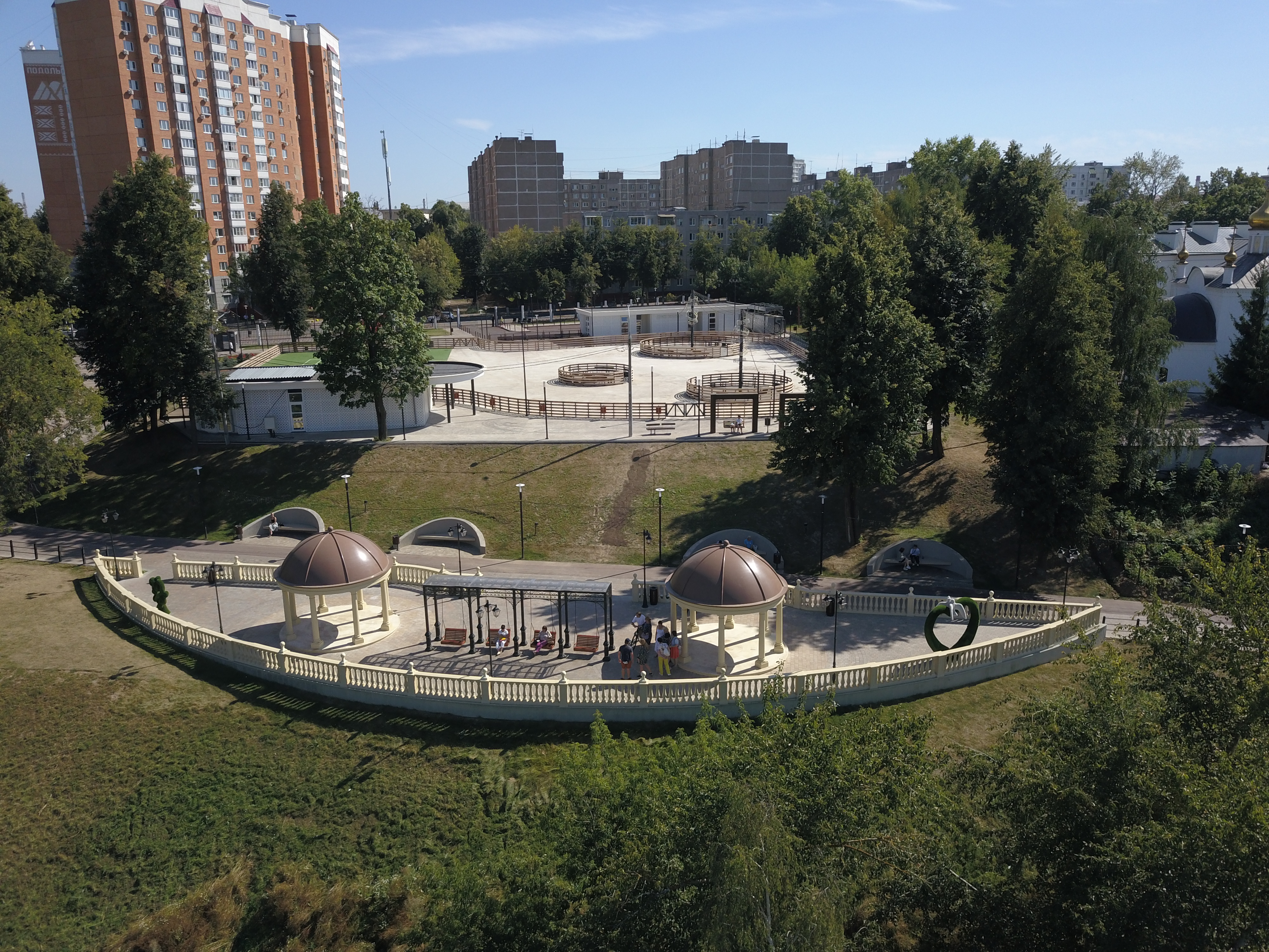 На территории установили качели-перголы, скамейки, теннисные столы, площадку для воркаута, парковые лежаки, кресла, современную навигацию и общественный туалет. Около центрального входа разместили парковку. Кроме этого, обустроен «Свадебный парк» с ротондами и качелями. Эта часть парка уже доступна для прогулок и отдыха жителей и гостей города.