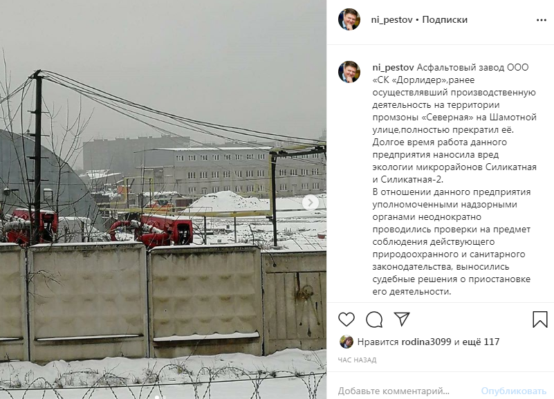 Асфальтовый завод «СК «Дорлидер» прекратил свою деятельность, об этом в своем «Инстаграме» написал глава Подольска Николай Пестов.