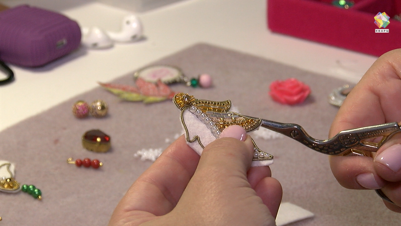 -Конечно, пришиваю я в определенной технике. Биресенка к бисеренке, очень плотно, очень качественно нужно укрыть весь фетр, чтобы ткань не было видно,- поделилась мастер авторских работ, Татьяна Котловенко.