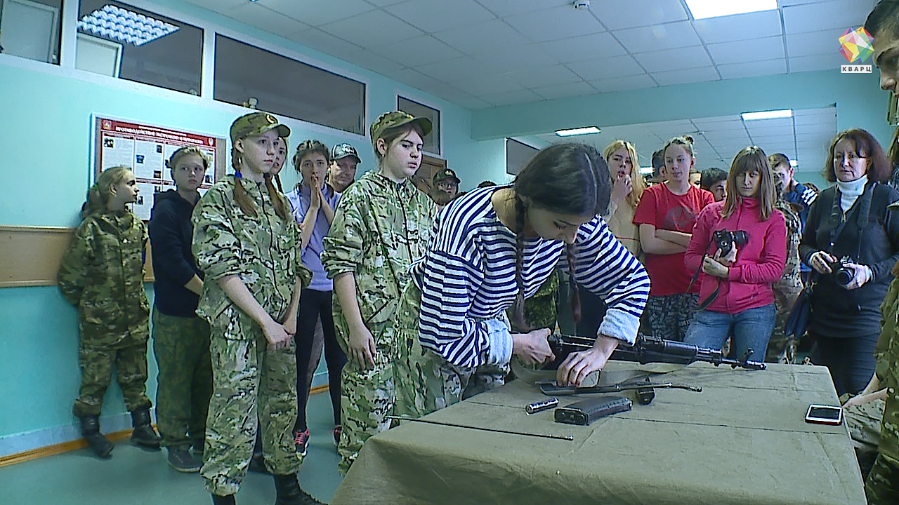 Какая же военная игра без оружия? На очереди сборка-разборка знаменитых пистолета Макарова и Автомата Калашникова, а также снаряжение магазина АК. Невооруженным глазом заметно, что с суровым и тяжелым оружием девчонки давно на «ты». Не успеваешь уследить за движение хрупких рук, как задание уже выполнено.