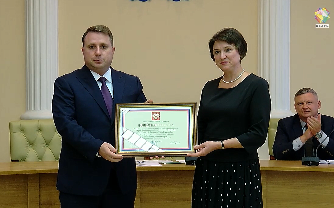 Глава Подольска Дмитрий Жариков вручил почетную грамоту Президента России главному врачу Подольского кожно-венерологического диспансера Наталье Ельцовой.