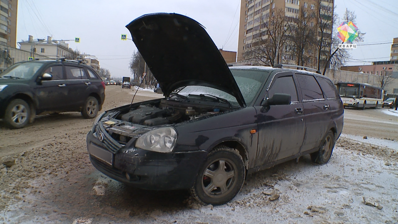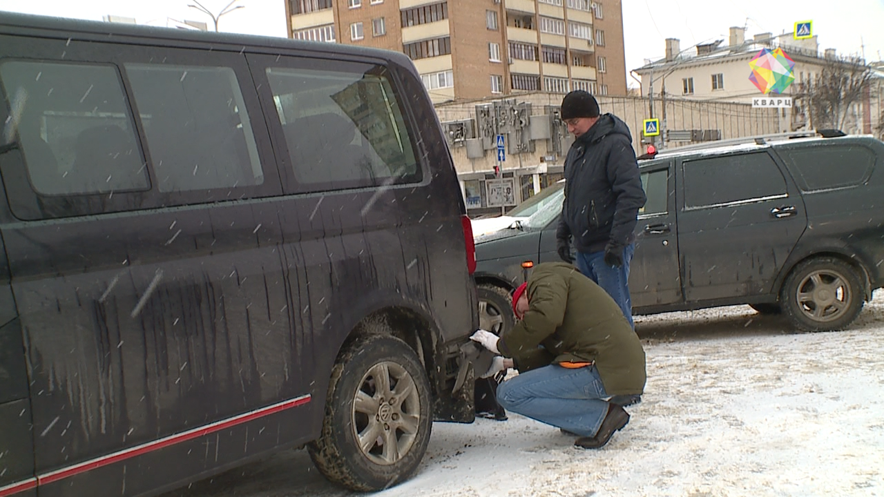 Самый центр города. Примерно в 10 часов утра на площади Ленина столкнулись два автомобиля. Водитель "Приоры" поворачивал с улицы Комсомольской на Кирова. В этот момент шофёр на "Фольксваген Транспортёр" хотел обогнать российское авто. Но из-за заснеженной дороги не справился с управлением и затормозил.