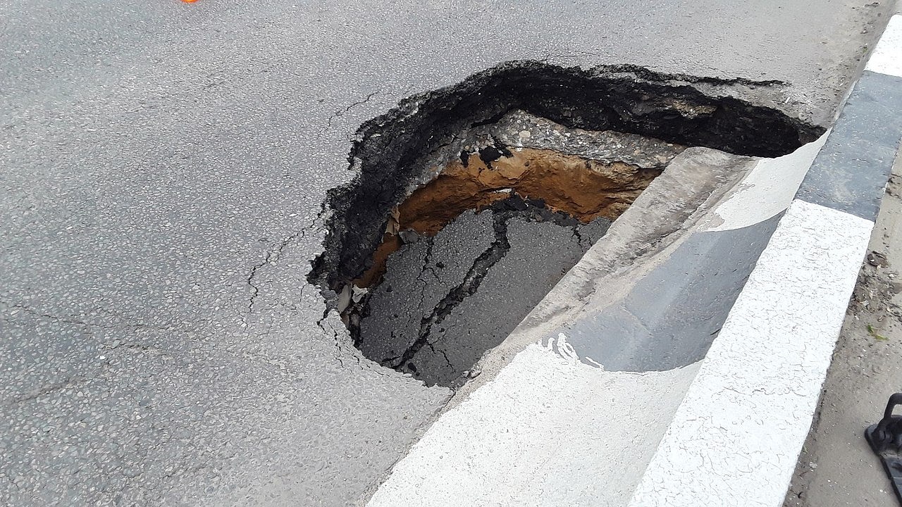 Обвал асфальтобетонного покрытия произошел накануне. В связи с образованием на проезжей части просадок, затрудняющих движение транспортных средств, а также в целях безопасности, было принято решение о перекрытии аварийного участка дороги в обоих направлениях до устранения причины разрушения проезжей части.