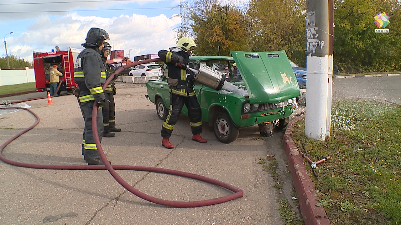 На Бронницкой улице автомобиль врезался в столб. В результате ДТП машина загорелась, а водитель оказался зажат внутри. По такой легенде экстренные службы города провели совместные учения.