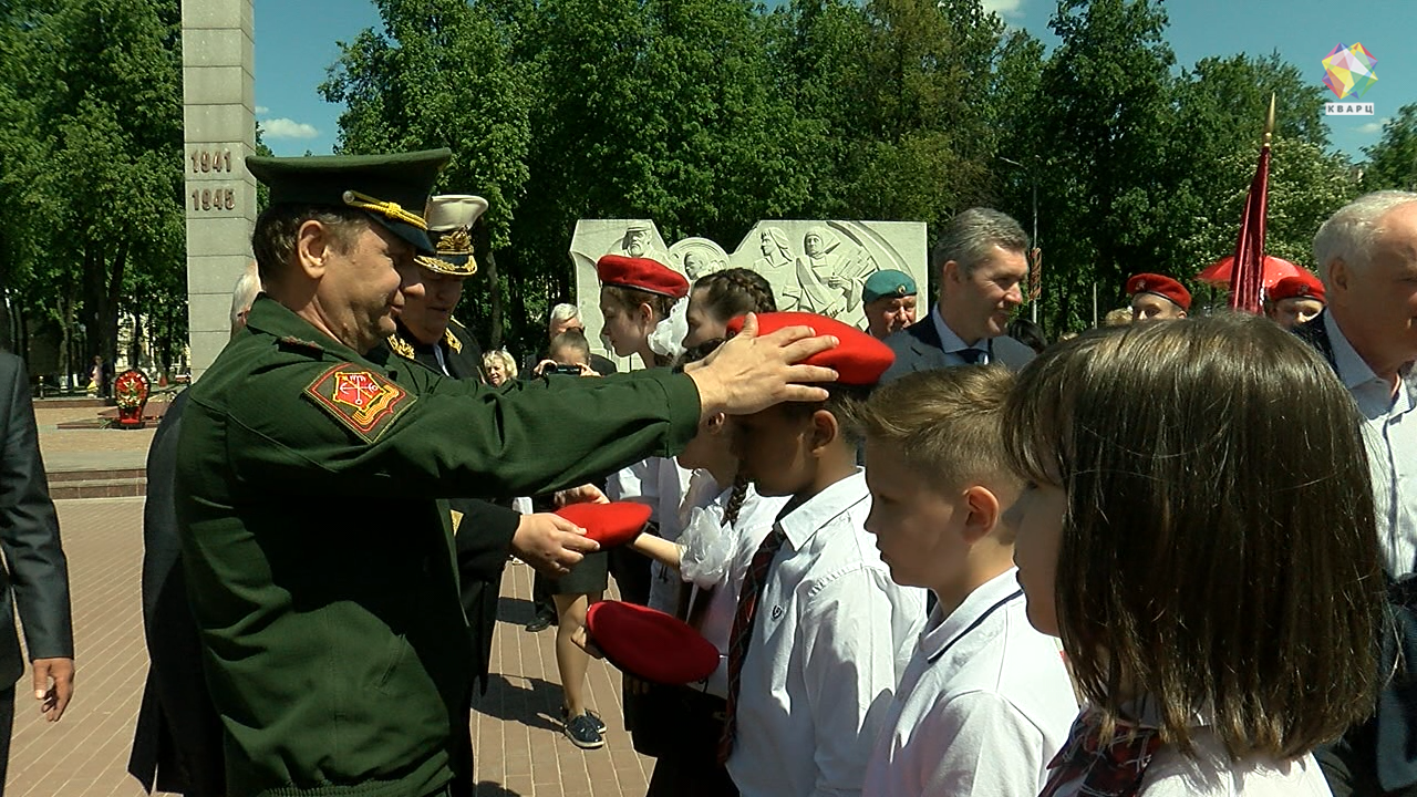 Почетные гости помогают надеть юнармейцам красные береты. Теперь на плечах этих мальчишек и девчонок ответственная и почетная миссия.