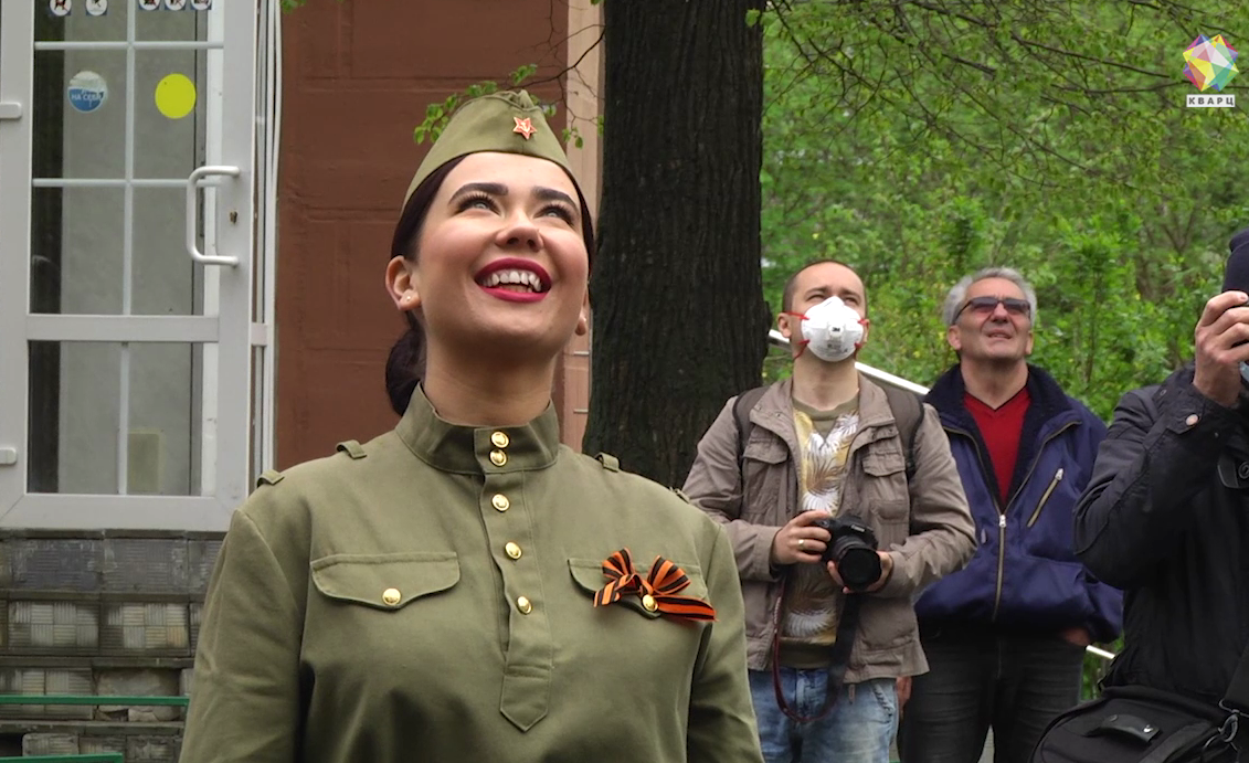 Вместе с жителями они исполняют песни военных лет. Люди открывают окна, подпевают и не скрывают своих слез радости и благодарности, за мирное небо над головой.