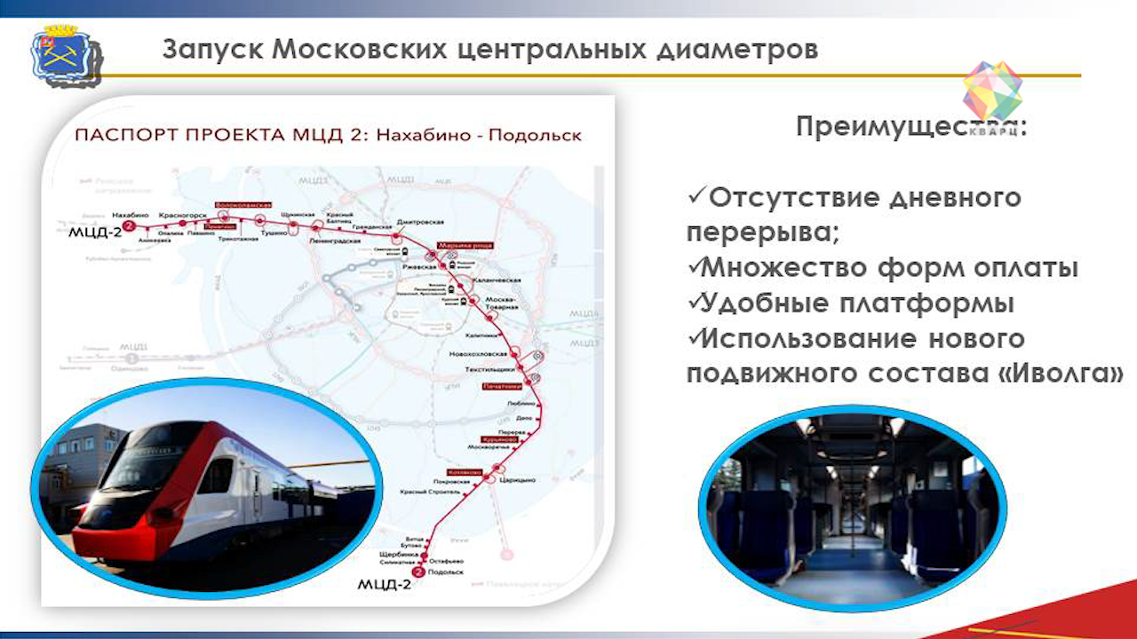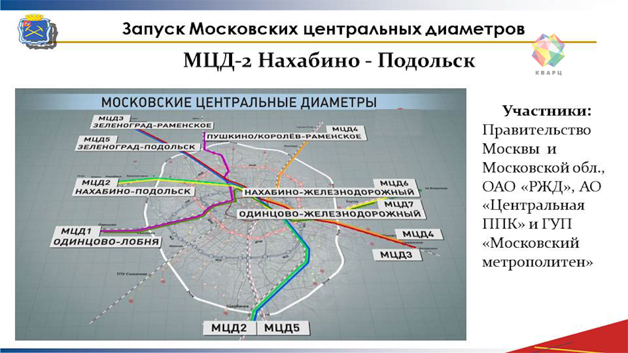 Данные диаметры, по сравнению с обычными электричками, будут проходить через всю Москву и не будут привязаны к конкретным вокзалам. Отсутствие остановок на вокзалах увеличит количество новых маршрутов как в Москве, так и в области, - рассказывает Анатолий Гребенюк, заместитель Главы Администрации по дорожно-транспортному комплексу и благоустройству.