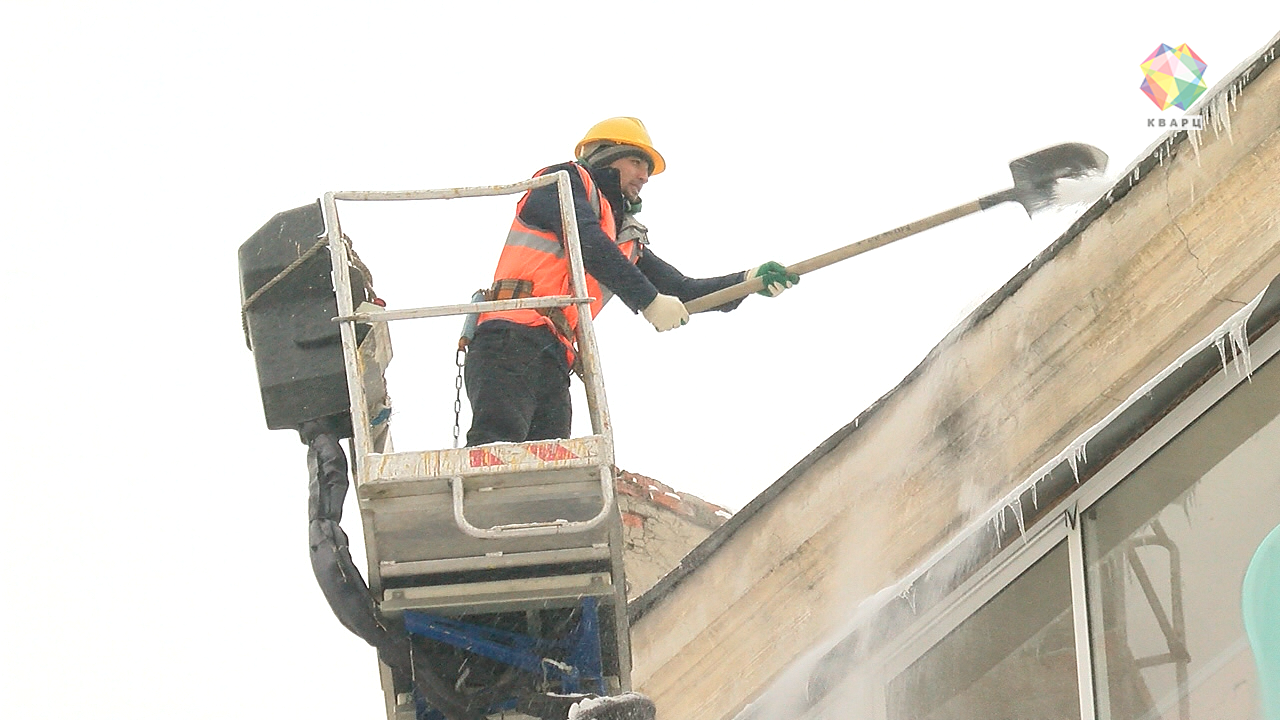 Очистка крыш от снега и сосулек - это обязанность управляющих компаний. Статья 161 Жилищного Кодекса обязывает тех, кто управляет многоквартирными домами, создавать благоприятные и безопасные условия для людей. МУЖРП-5 ежедневно выходит на борьбу с городскими сталактитами. Используют две собственных автовышки, привлекают промышленных альпинистов, но до конца решить проблему не удается - на месте сбитых сосулек нарастают новые.