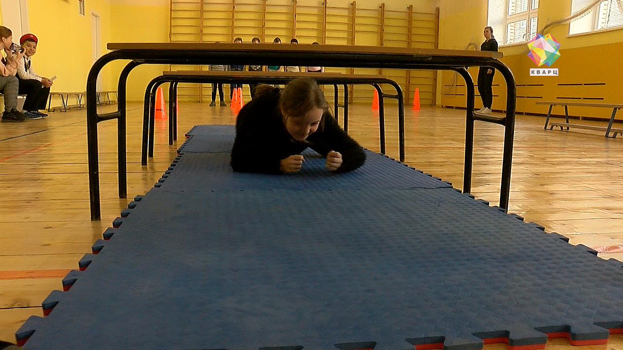 В это время на полосе препятствий - Быковская школа. Кому как не им знать, что такое настоящий юнармеец. Сегодня у них в соперниках 23 команды, а это почти 200 человек.