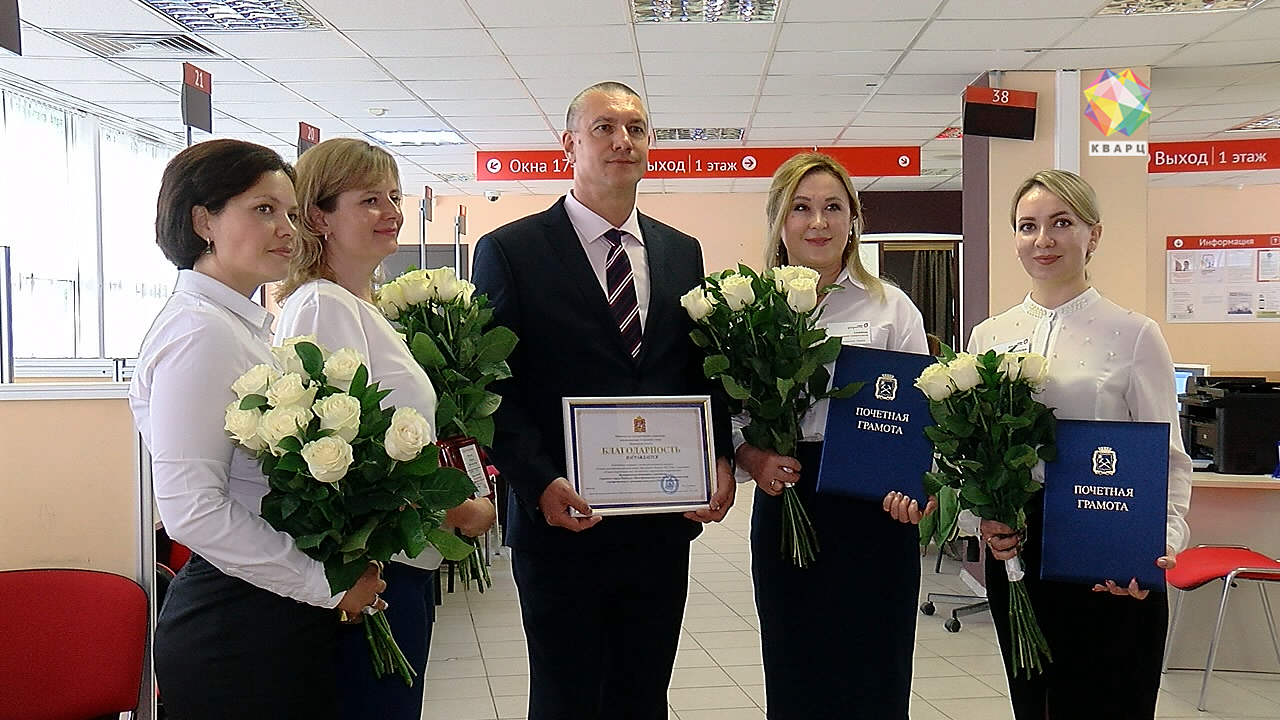Третье место в номинации «Лучший МФЦ Московской области» по итогам работы в минувшем году. В отснятом видеоролике - весь коллектив подразделения "Кузнечики", и именно они сегодня из рук главы округа получают заслуженные награды. К областной благодарности добавляются муниципальные. Помощник директора по развитию Лариса Филипп отмечена знаком за заслуги перед Подольском 2-ой степени, еще три сотрудника получают почетные грамоты главы.