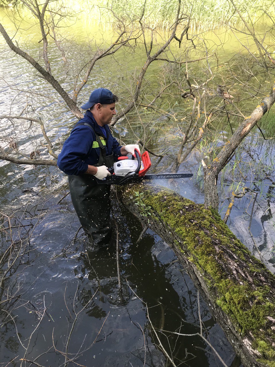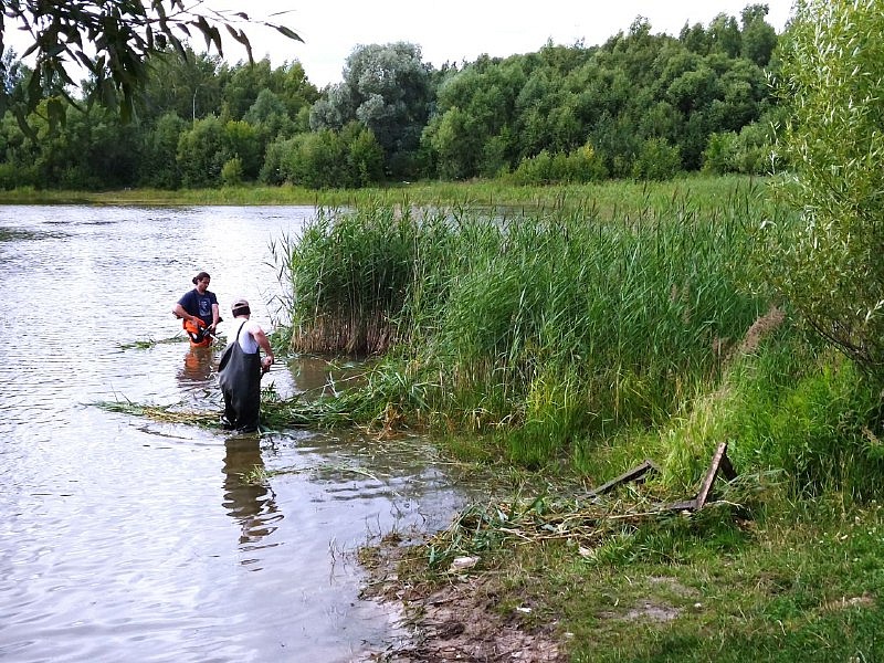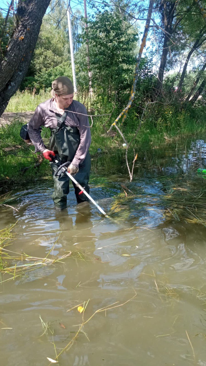 Там продолжаются работы по очистке водоема и прибрежной полосы. Уже провели опиловку веток деревьев, лежащих на воде, скосили камыш вдоль береговой зоны, собрали и вывезли мусор. Кроме того, обрезали кустарники у спуска к воде на пляжной зоне.