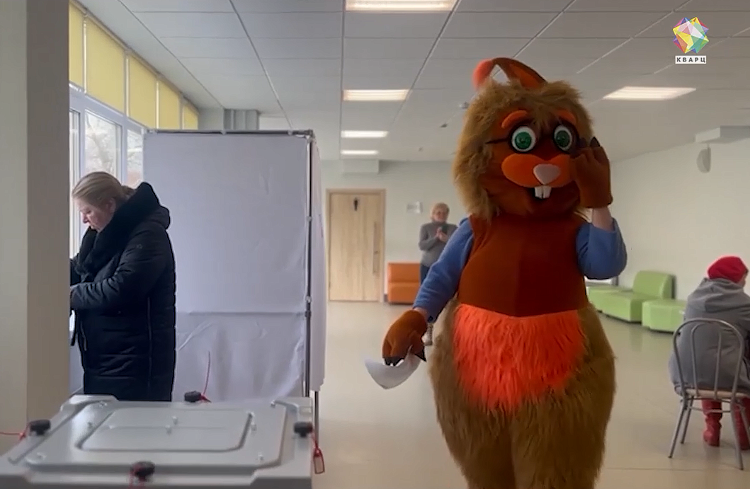 В руках корзина с подарками и паспортом. Несмотря на то, что на выборы идёт белка, без документа не обойтись, как и без досмотра стражей правопорядка. И тут все маски сняты, а за ней - Марина Румянцева. Вот так необычно - девушка решила повысить себе настроение и окружающим.