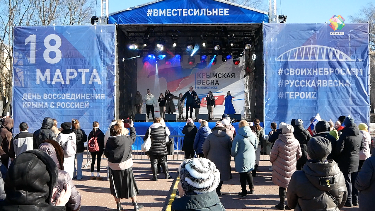 - По всей стране проходят праздничные мероприятия по случаю воссоединения Крыма с Россией, и, конечно, Подольск не мог остаться в стороне. Сегодня замечательная, солнечная погода, и на площади Славы, на главной площади нашего городского округа Подольск, у нас большое мероприятие, посвященное этому замечательному событию, - говорит Татьяна Ропот, замглавы администрации г.о. Подольск.