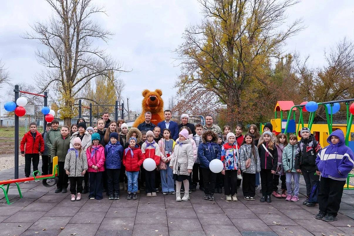 Глава Подольска вместе с ребятами, педагогами, председателем Совета депутатов Подольска Игорем Науменковым, игуменом Вознесенской Давидовой Пустыни, благочинным монастырей Подольской епархии Московской митрополии Сергием открыли новое игровое пространство в Луганске.