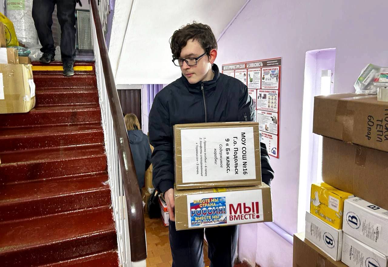 Наша школа уже участвовала в акции «Подольск помогает». На этот раз мы собрали порядка 40 коробок. Девочки их упаковывают и подписывают, а мальчишки носят. А еще ребята передали на фронт около 700 новогодних открыток с добрыми пожеланиями и тёплыми словами, - делится