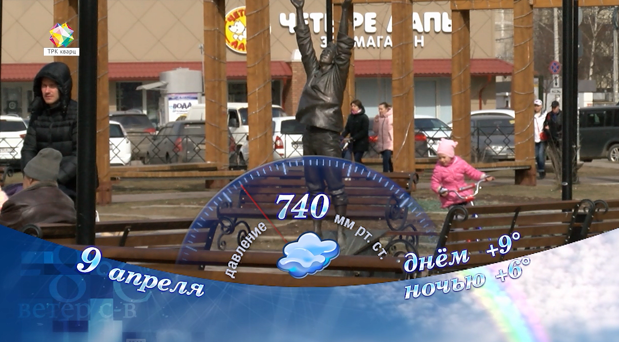 В субботу, 9 апреля, в Подольске пасмурно. Температура воздуха ночью +6, днём +9 градусов; атмосферное давление 740 мм ртутного столба;ветер южный 4 м/сек; относительная влажность воздуха 66%