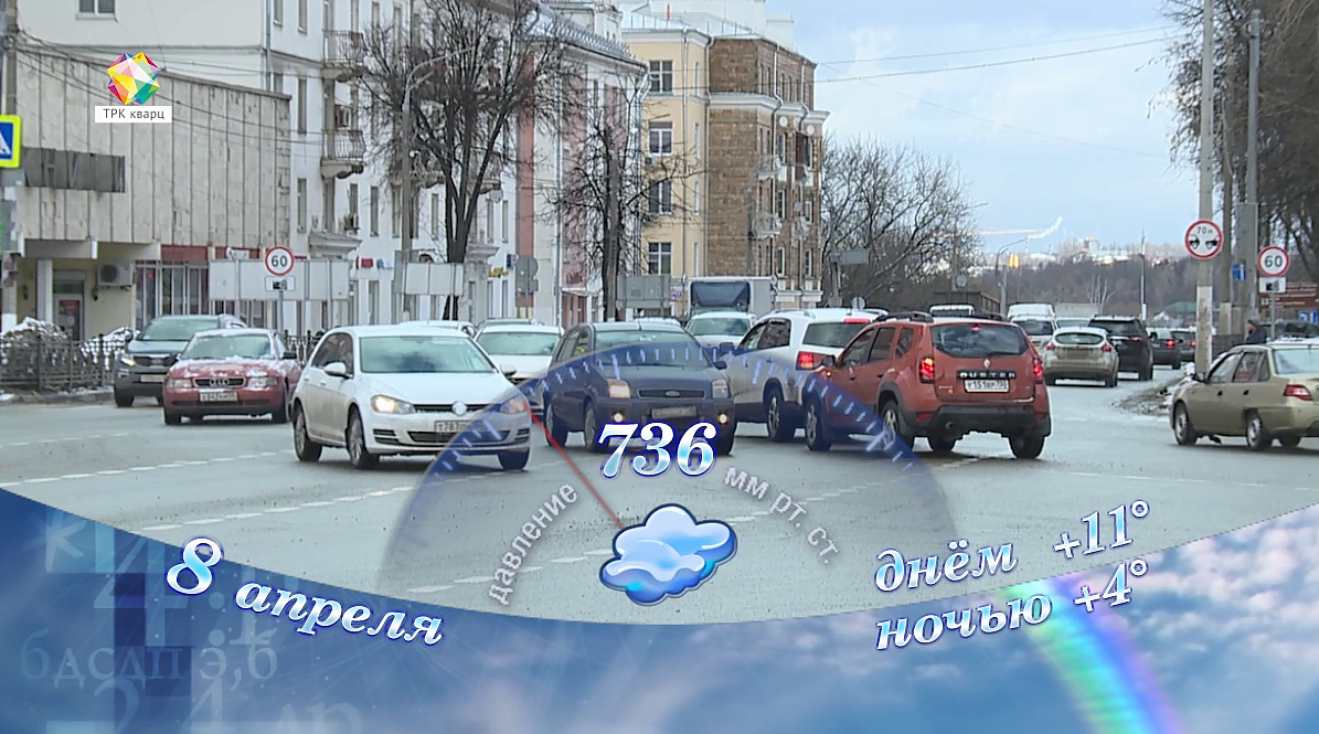 В пятницу, 8 апреля, в Подольске пасмурно. Температура воздуха ночью +4, днем +11 градусов; атмосферное давление 736 мм ртутного столба; ветер южный 7 м/с; относительная влажность воздуха 75%