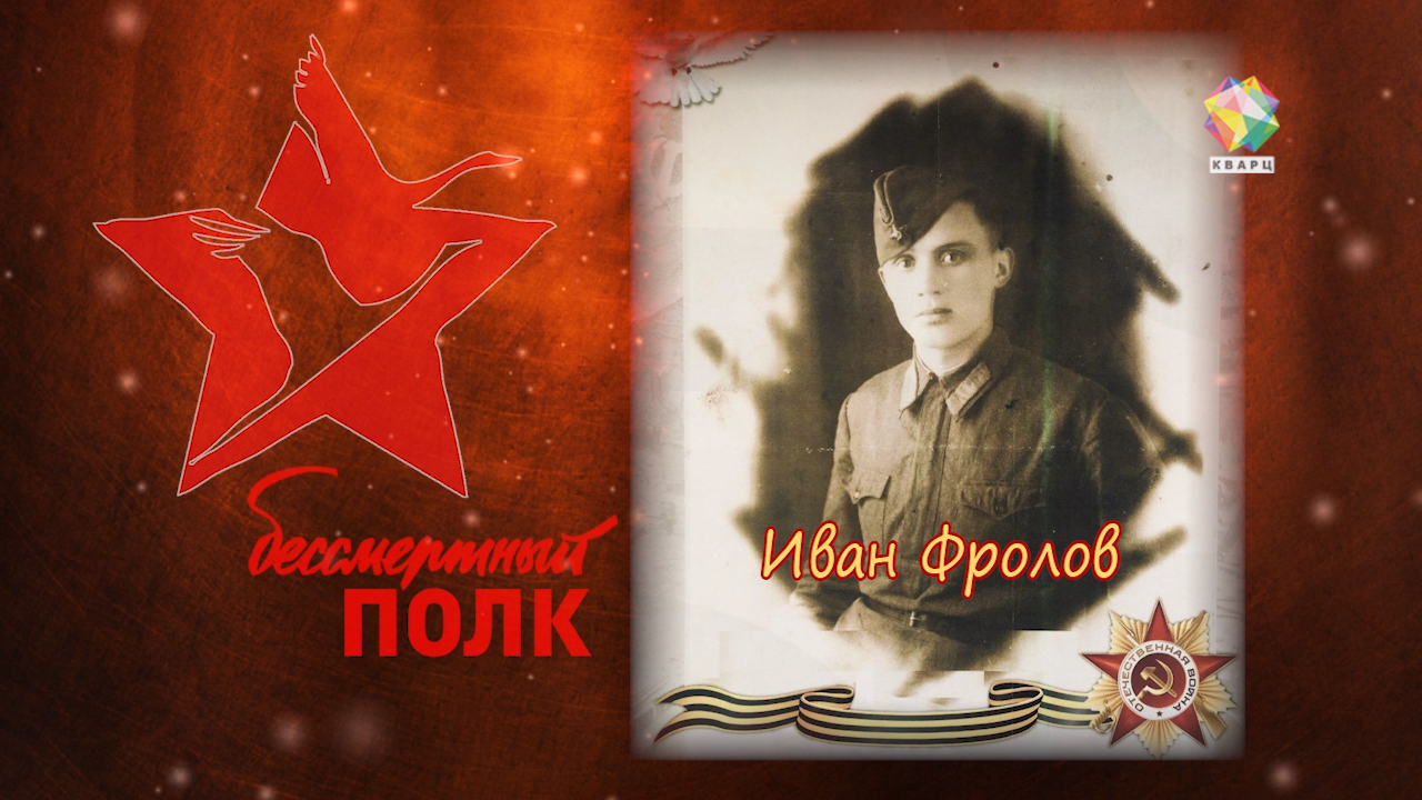 Иван Иванович Фролов родился в 1917-м. В 22 года был призван в армию и направлен в лётное училище, которое не успел закончить. Началась война, был направлен в десантные войска в звании политрука, комиссаром роты. Дважды был ранен, лежал в госпитале. Прошёл всю войну, участвовал в боях за освобождение Кавказа, Польши, Берлина. Неоднократно прыгал с парашютом в тыл врага.