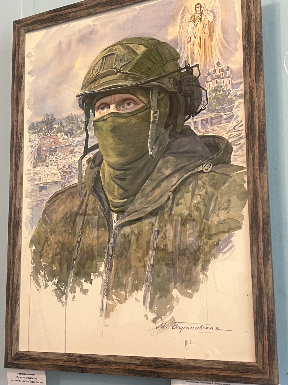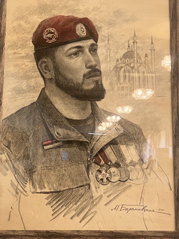 На выставке совершенно уникальные работы выполнены в различных техниках. Портрет "Ромашки" написан углём. Первое ранение медик получила под Авдеевкой, Яна погибла в сентябре 24-го от удара дрона. Рядом боец с позывным "Пресса". Он наш коллега, снимал для федеральных каналов. После нескольких командировок Роман заключил контракт. Пропал без вести под Бахмутом. Каждая работа - отдельная история. Только вглядитесь в этот стальной взгляд и только представьте, что на этих глазах наворачиваются слёзы, когда Антон рассказывает о силе, которая объединяет. Именно он - "Скиф" руководитель проекта. На Донбассе с 14 года.