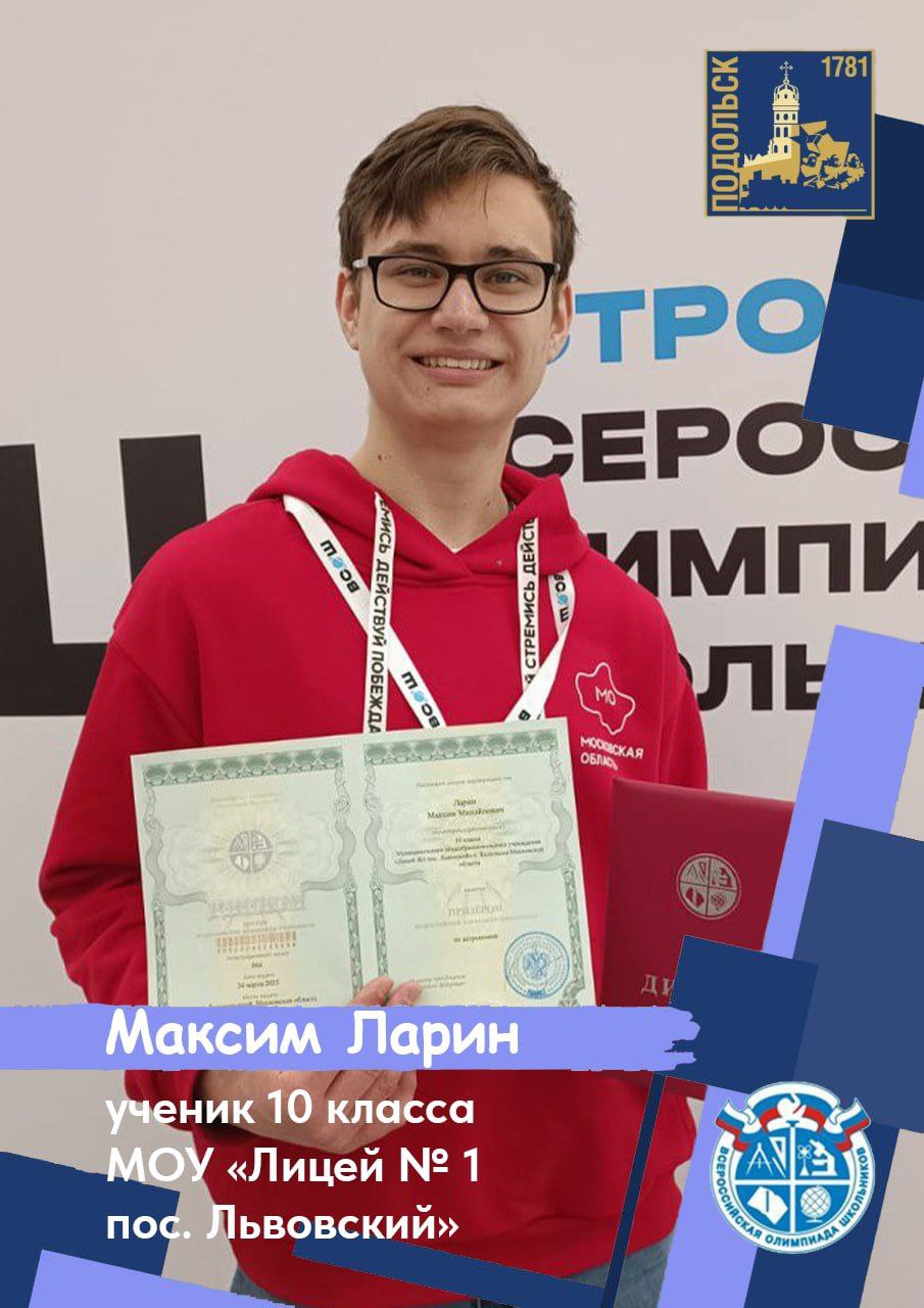 Призёром стал Максим Ларин, ученик 10 класса Львовского Лицея № 1.