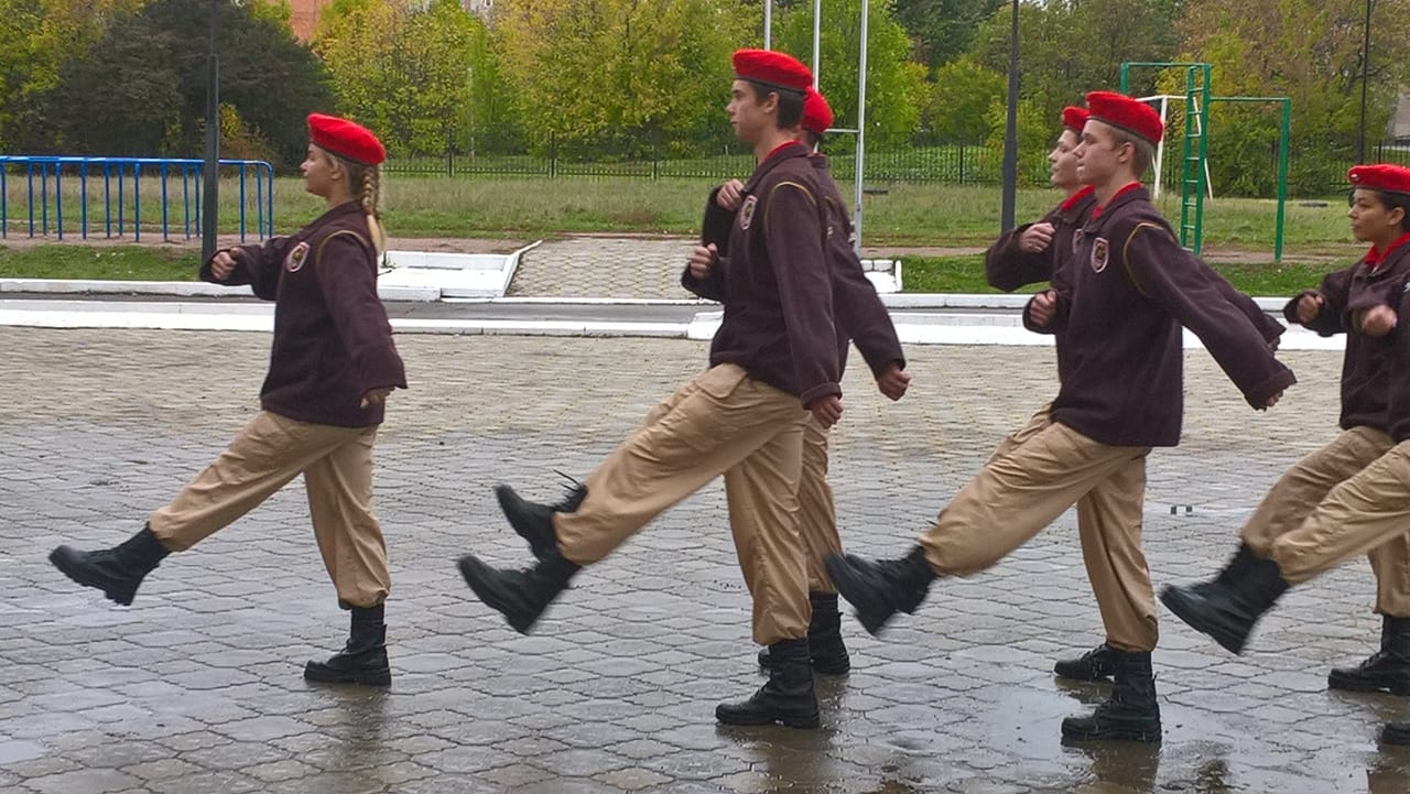 Строевая подготовка - это одно из девяти заданий, которые должны пройти команды. Быковская школа на время стала местом, где маршируют повсюду. Не подвести свой город и пройти испытания достойно - вот главная задача.