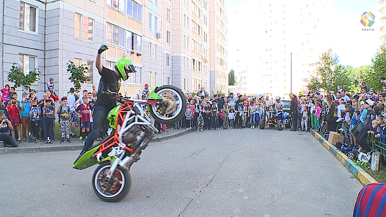 3 часа веселья, радости и ярких впечатлений жителям микрорайона «Подольские просторы» подарили сотрудники управляющей компании «Главстрой – Эксплуатация». Своими силами они привели в порядок площадку, и теперь готовы проводить такие акции постоянно. А дальше уже все намного серьезнее. Площадку занимают участники мототеатра «Русский прорыв». Мотоциклисты показали много трюков, от некоторых просто дух захватывало. Создатели программы говорят, в представлении они постарались передать зрителям огромную гамму эмоций, которые овладевают водителем во время слияния с железным другом. Финальным аккордом праздника стало фаер-шоу.