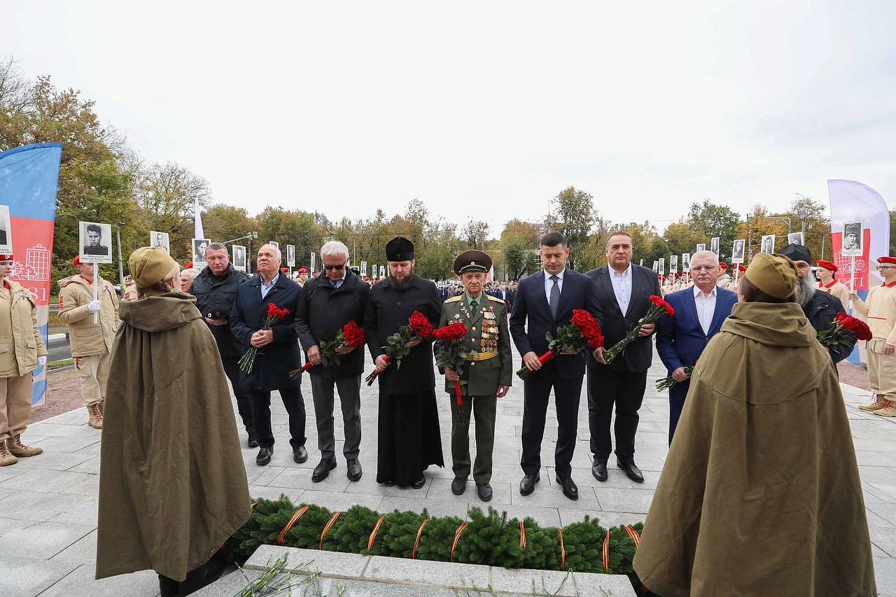 К памятнику Подольским курсантам сегодня возлагают цветы. Участие в митинге принимает глава округа Григорий Артамонов совместно с депутатом Государственной Думы Вячеславом Фетисовым, председателем горсовета Алексеем Никулиным, депутатом Мособлдумы Павлом Максимовичем и участником Великой Отечественной войны Николаем Ивановичем Герасимовым.
