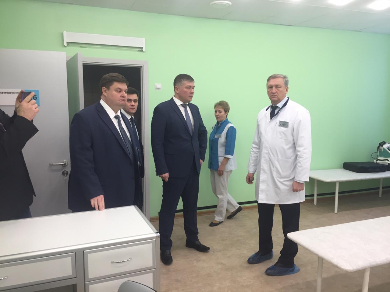 А это уже место, где проходит реабилитация. Электрофорез, УВЧ-терапия, аппарат для разработки кистей. Осмотрели гости и оперблок и постоперационную палату, а вот у земского доктора уже удалось застать пациента. В Кузнечиках теперь прием ведут более 100 специалистов, больше половины трудоустроены по федеральной программе.