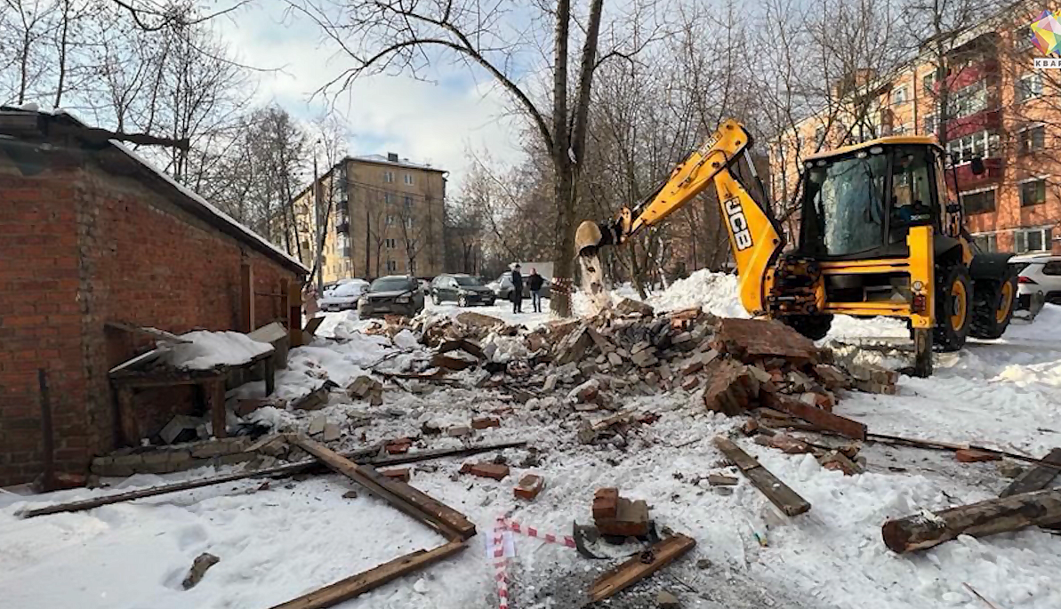 Сегодня очередную снесли во дворе дома 27/37 по улице Индустриальной. Два капитальных гаражных бокса пустили под экскаватор.