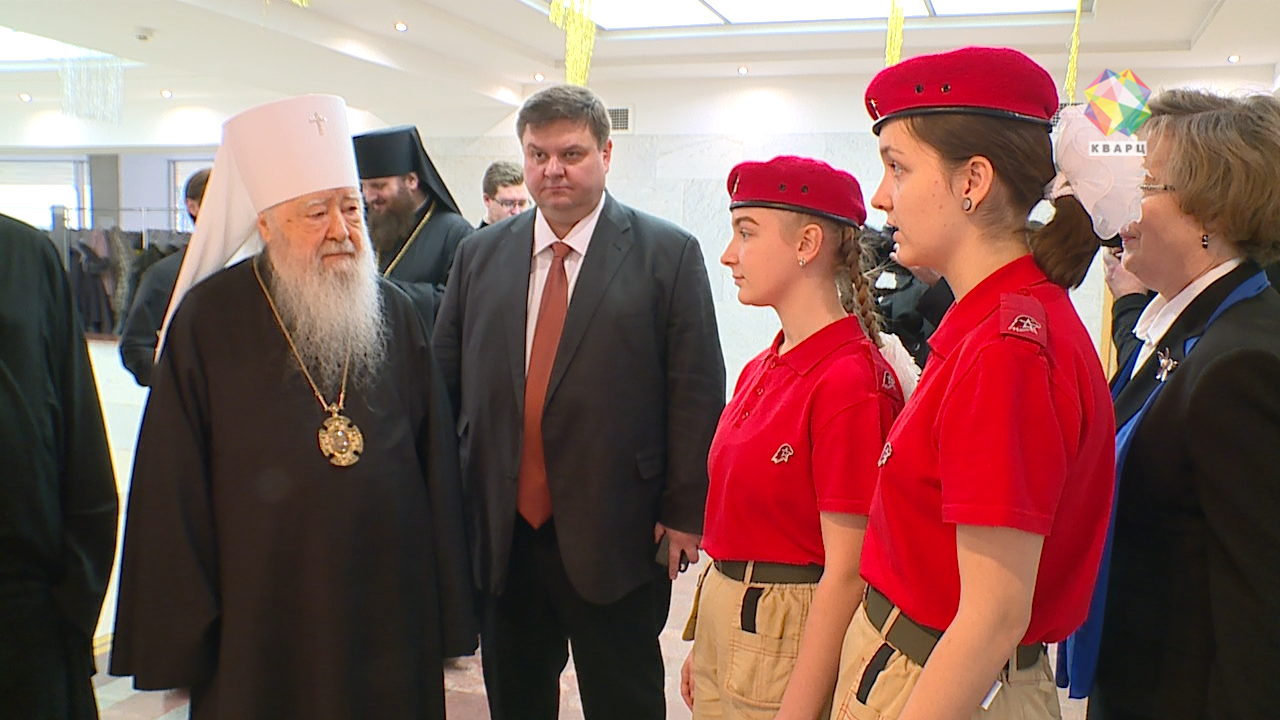 В этом году встреча с представителями церкви посвящена Великой Победе. Глава напомнил о подвиге Подольских курсантов. Митрополит Крутицкий и Коломенский Ювеналий и министр образования Подмосковья Ирина Каклюгина вручили школьникам и их наставникам грамоты.