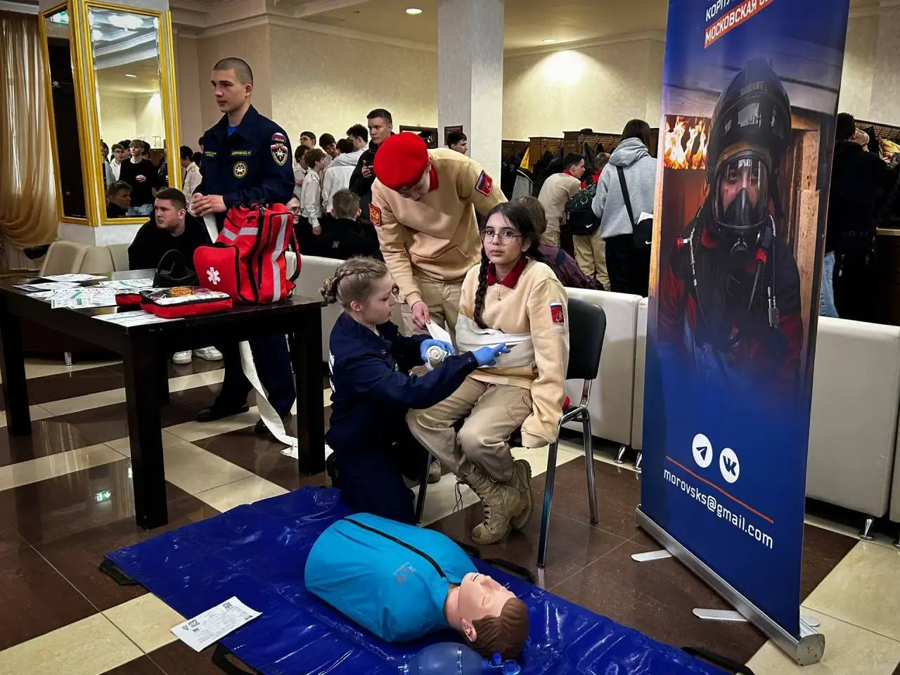 В фойе развернулась выставка патриотической направленности с участием объединений «Боевое братство», «Память», «Первый волонтёрский центр» и «Юнармия». Гости мероприятия познавали азы сборки-разборки оружия, узнавали воинские звания по погонам и осваивали навыки первой помощи — мастер-класс провели представители ВСКС. Перед КПЦ состоялась показательное выступление группы антитеррора войсковой части 34608, сообщает
