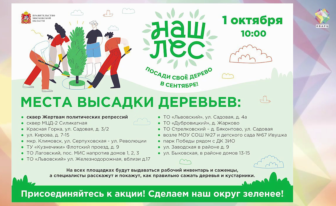 Завтра в нашем округе пройдет акция "Наш лес. Посади свое дерево". Подольск в разных его уголках станет намного зеленее.
