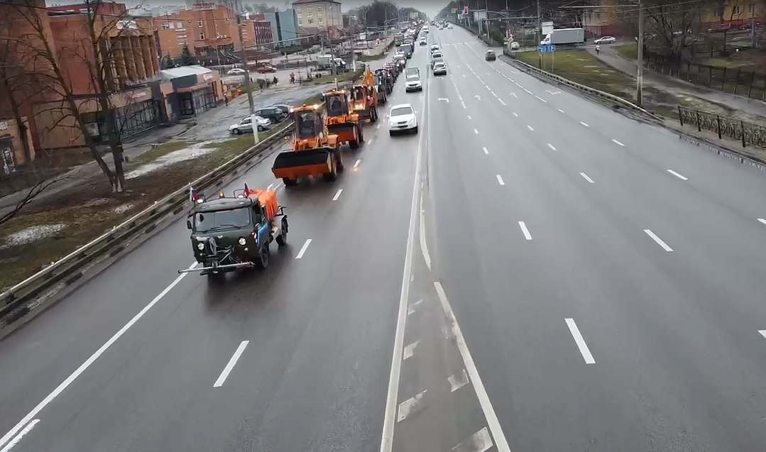 Колонна коммунальной техники из 40 машин проехала центральным улицам города, столько же единиц было задействовано в уборке территорий!